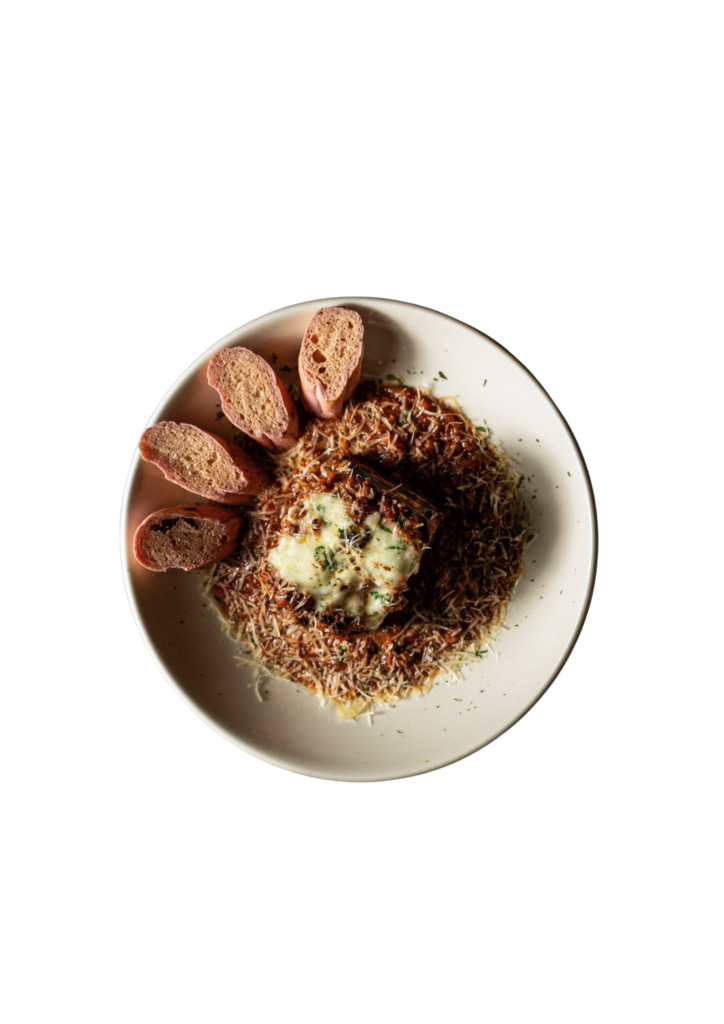 parmesano, bañados en salsa pomodoro y queso mozarrella de búfala fresca.